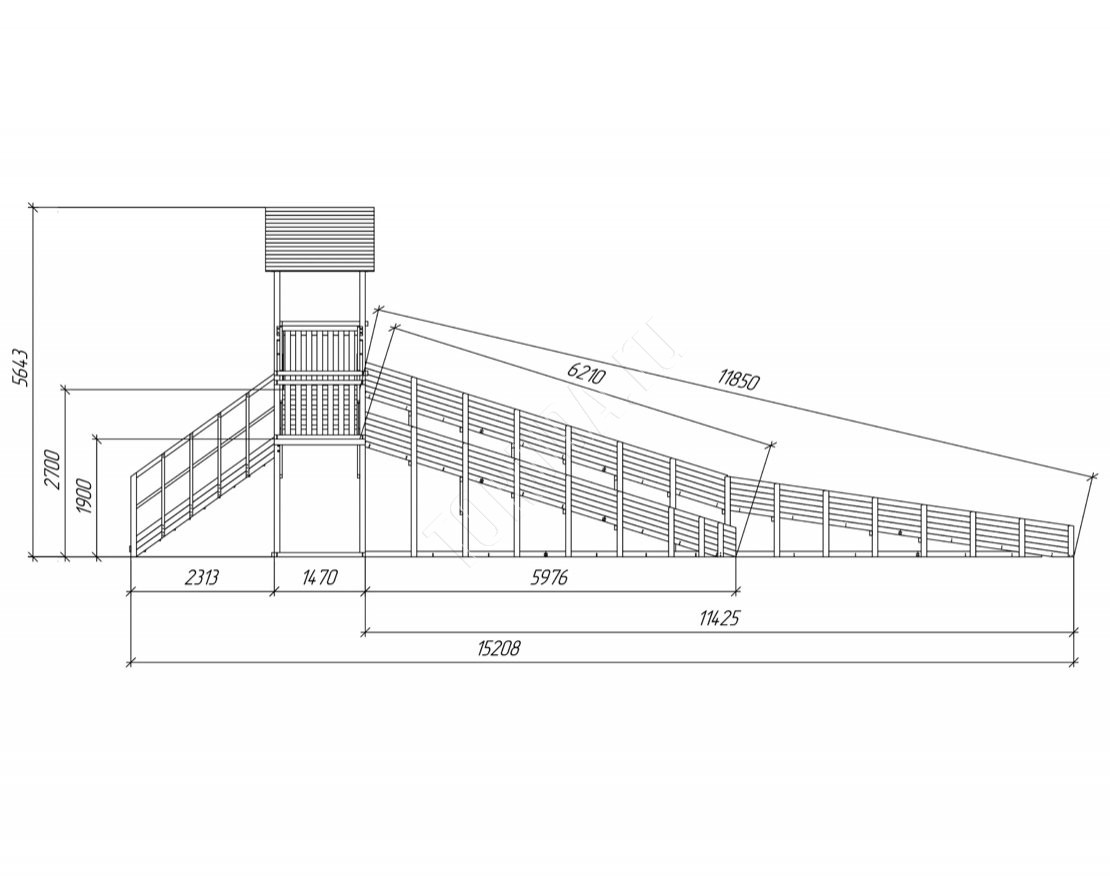Активные дети готовы проводить время на свежем воздухе даже зимой. А деревянная горка «TORUDA Север» - 9/2 – лучшее сезонное предложение для просторных спортивно-игровых площадок.