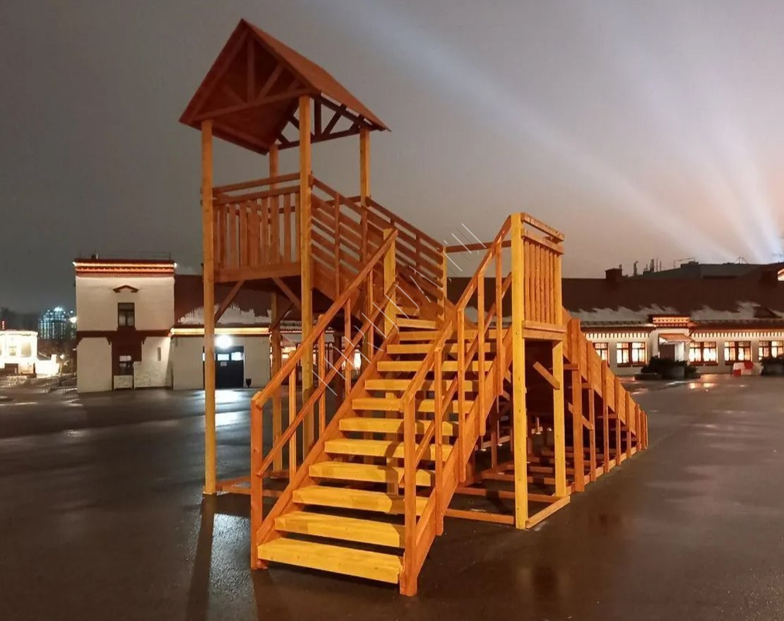 При изготовлении конструкций уделяется особое внимание безопасности всех элементов: углы скруглены и поверхности тщательно отшлифованы. Лесенки, перила и страховочные ограждения продуманы с точки зрения безопасности и удобства для детей.