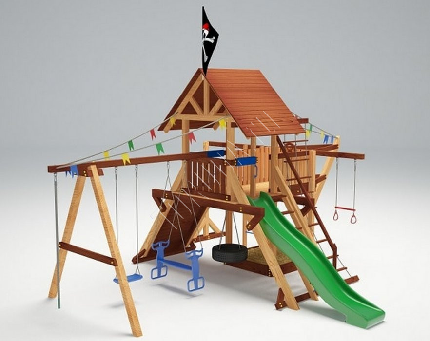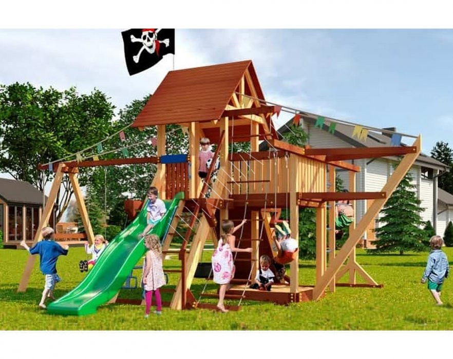 Площадка Галиот 5 обладает довольно широким функционалом (который по желанию можно легко расширить). А на качелях могут кататься даже родители! Детская площадка предназначена для дачи, коттеджа.